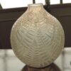 Vaso a forma sferica "Espalion", chiamato anche "fougères" cioè felci (che ne caratterizzano il decoro), realizzato in vetro opalescente "soufflé-moulé" (soffiato dentro uno stampo in metallo), smaltato e, anticamente, colorato in modo da far risaltare il decoro.